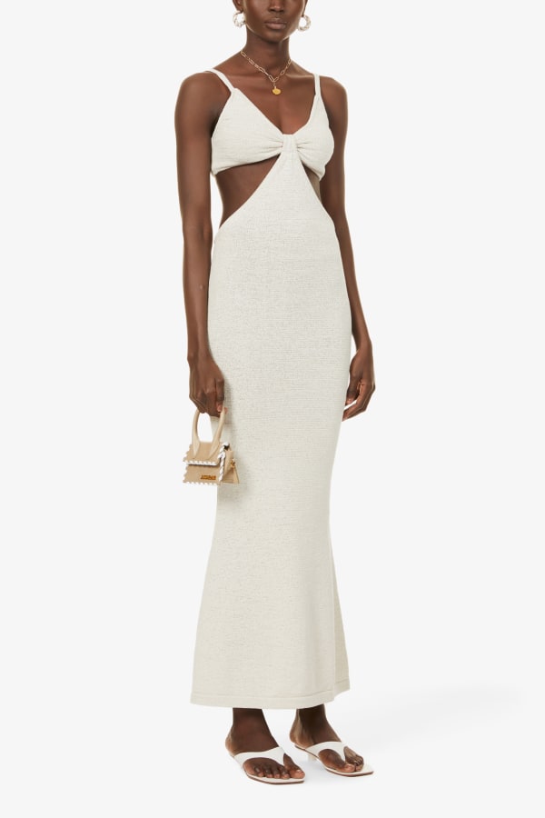 Cult Gaia cotton-blend maxi dress 77 cotton 23 polyester Slips on V-neck elasticated shoulder straps twist-knot at front medium knit cut-out panels at sides open back fitted branded gold. Discover the Most-Wanted Designer Styles and Luxury Gifts from Bergdorf Goodman. Weve Got Your Wardrobe Covered.