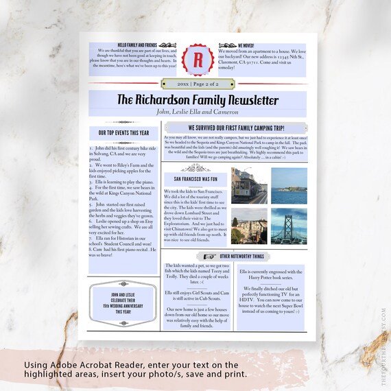 Editable Family Newsletter Template In Pdf For Print Etsy Israel